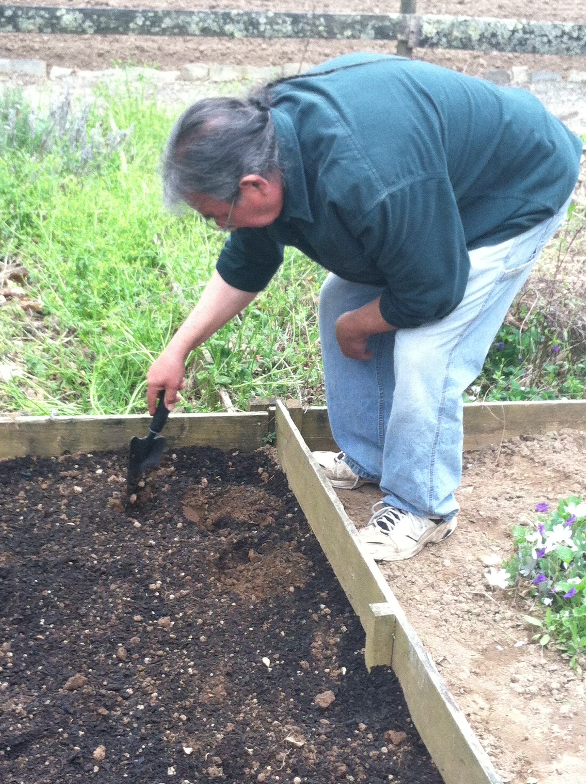We held the first planting workshop at the Oconaluftee Indian Village, an authentic Cherokee working village that portrays Cherokee life and rituals from the late 1700s. The village has an area dedicated to traditional Cherokee plants where we made a planting bed after discussing the lifecycle of the plant, site selection, and the importance of selective harvesting. The conservation side of the plant was highly emphasized. When people were just harvesting small amounts for personal use, population pressure was not as much of a concern. Today, bloodroot is not only harvested for use as a dye, but also has a strong international demand as a medicinal ingredient. For example in Europe it is used in dentist’s office as an oral medication to fight plaque and gum disease.